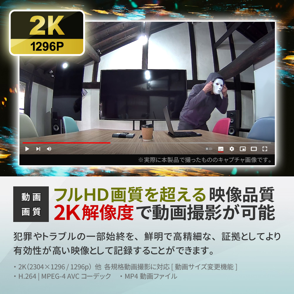 | 動画解像度 | 2304×1296px(2K)/ 1296P |