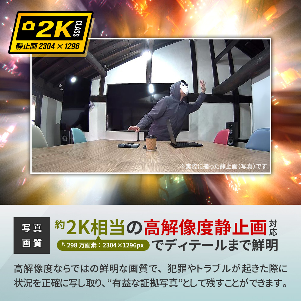| 静止画解像度 | 約298万画素(2304×1296px)※2K級 |