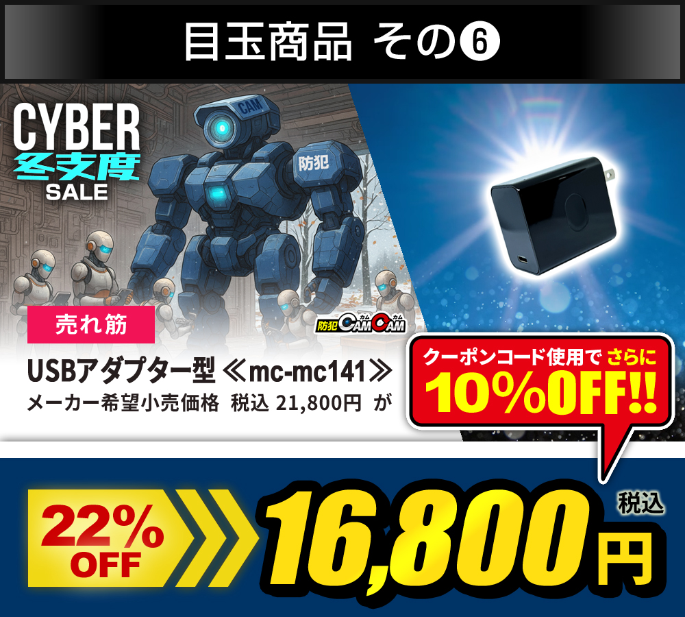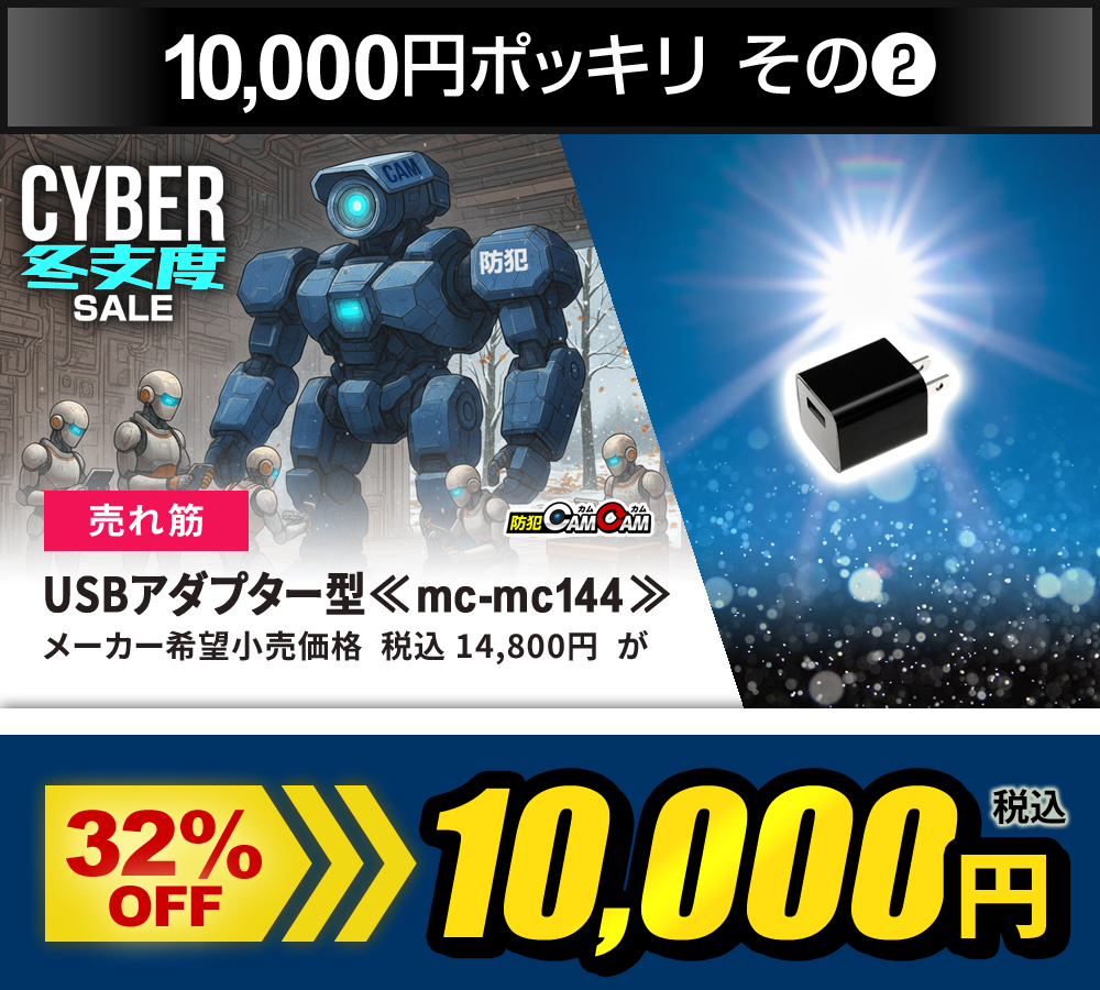 【1万円ポッキリ価格】[mc-mc144][アダプター型] 小型軽量 持ち運びに便利 24時間連続録画 動体検知自動録画