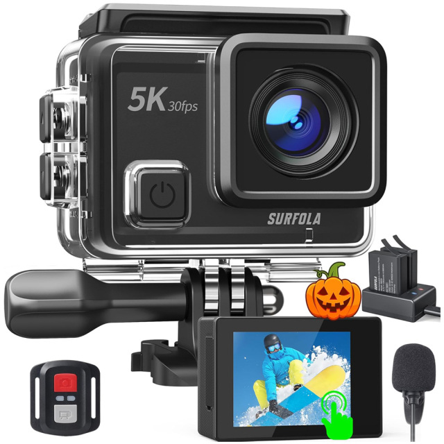 [アクションカメラ] 5K30FPS 24MP解像度 EIS手ブレ補正 WiFi搭載 マイク付属 タッチパネル式 1350mAh大容量バッテリー2個付き バッテリー充電器付き 水中カメラ リモコン付き 水深40メートル防水ケース mc-azac005