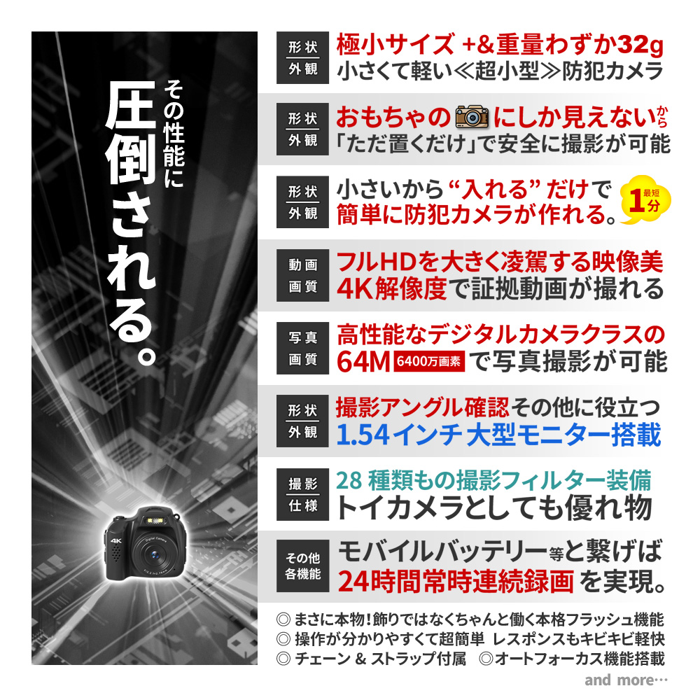 【半額SALE対象商品】[mc-hjd02] [超小型] 4K 6400万画素 1.54インチモニター搭載 24時間連続録画 トイカメラ