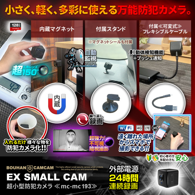 【半額SALE対象商品】[mc-mc193] [超小型] HD720P 超広角動画撮影 スマホで遠隔操作 本体マグネット内蔵