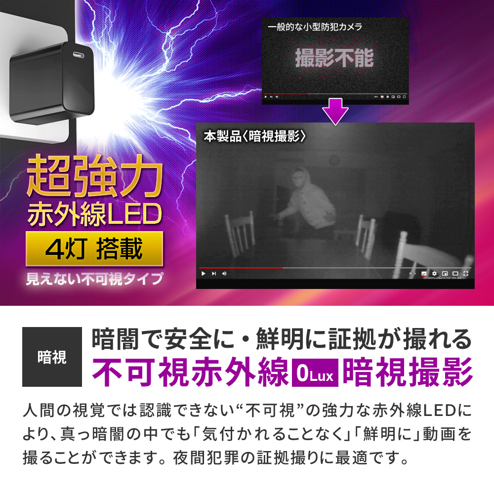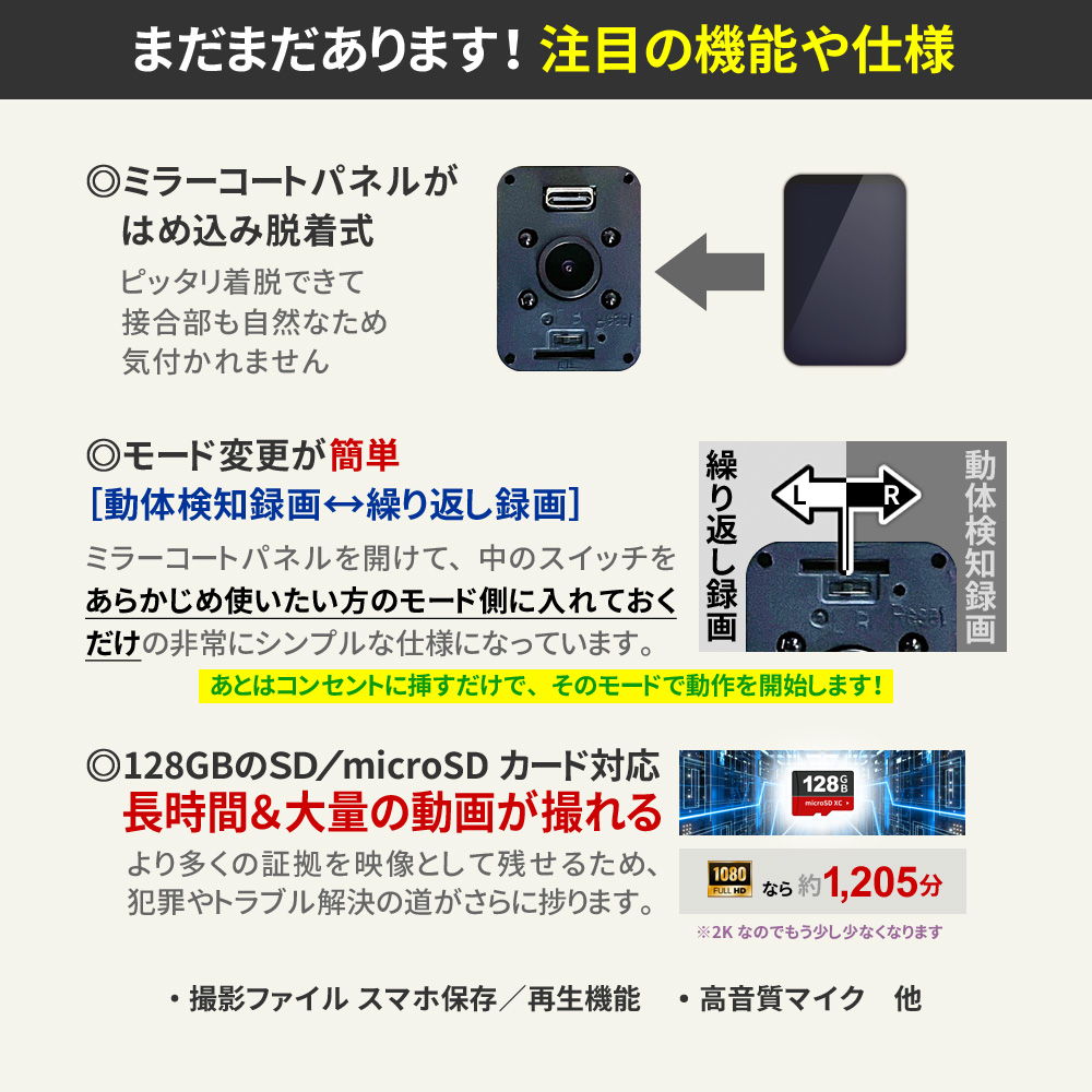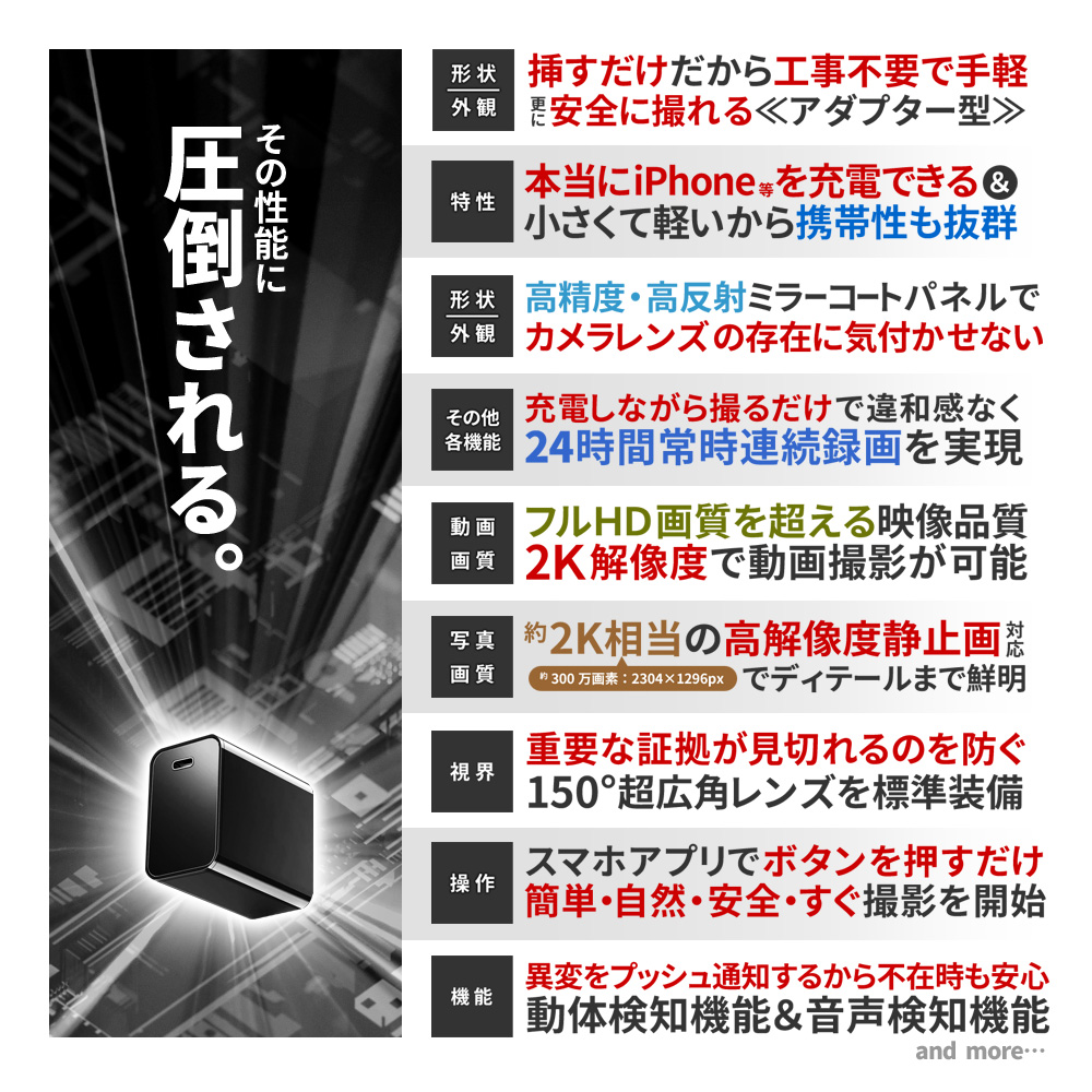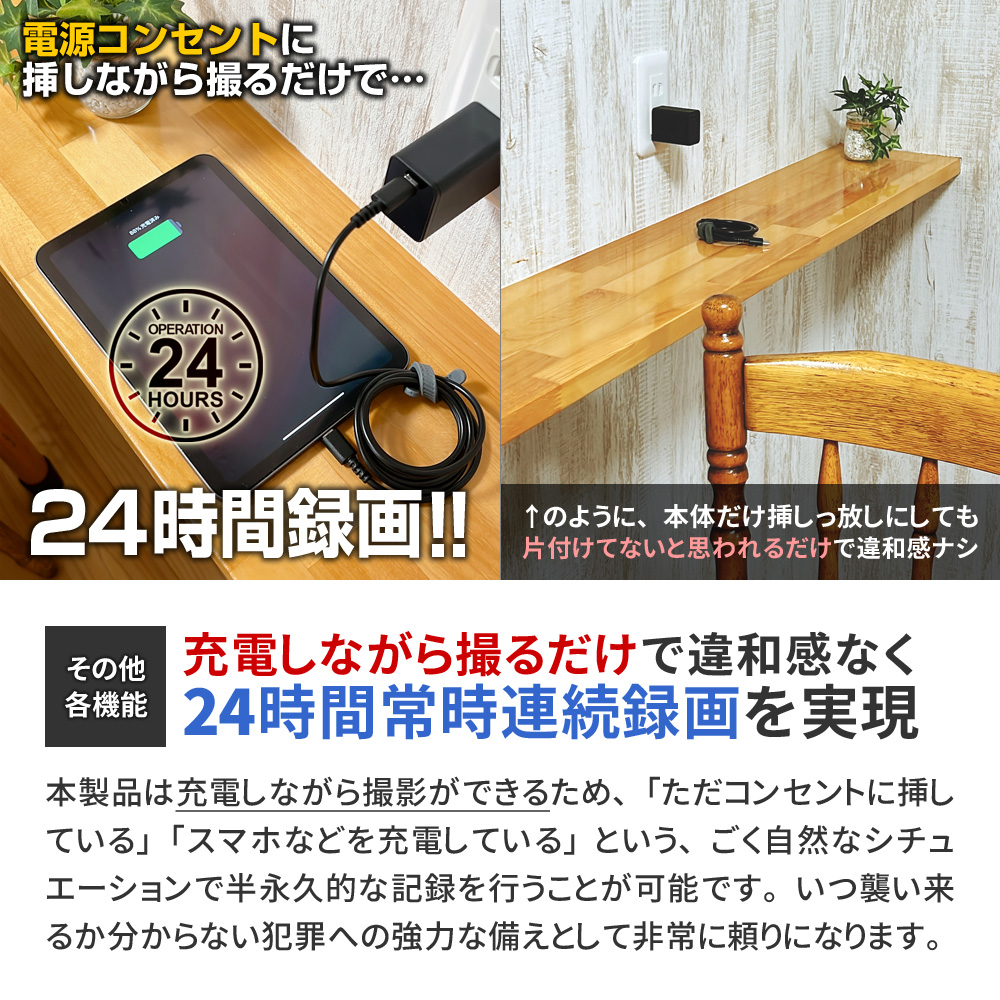 [mc-mc220] [アダプター型] 2K高画質 コンセントに挿すだけ スマホで遠隔操作 24時間連続稼働 暗視撮影