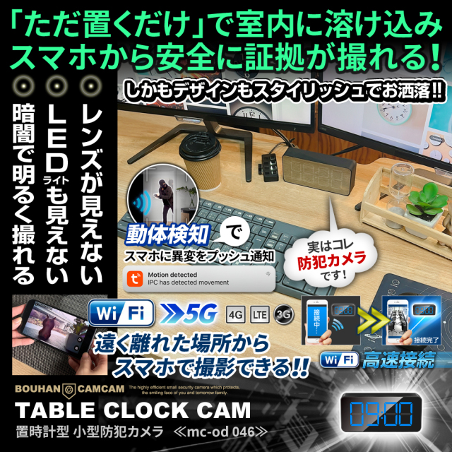 [mc-od046]置時計型カメラ レンズが見えない スマホで遠隔操作 暗視撮影 24時間連続録画