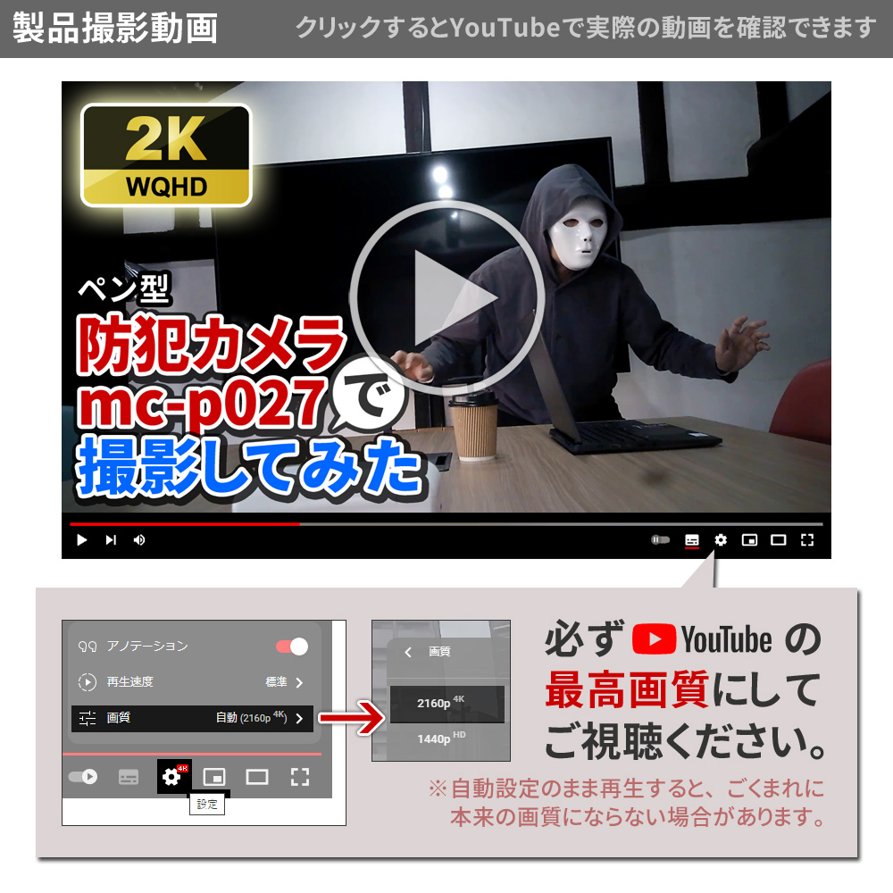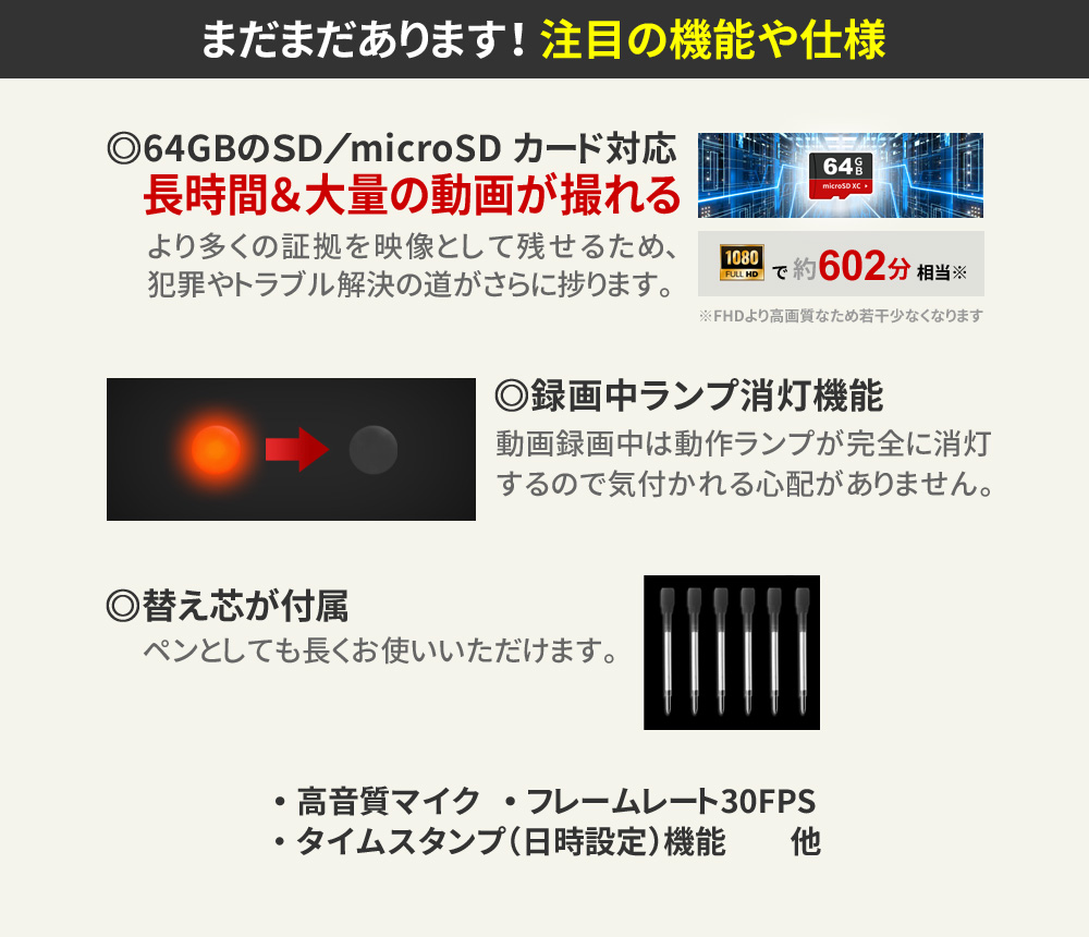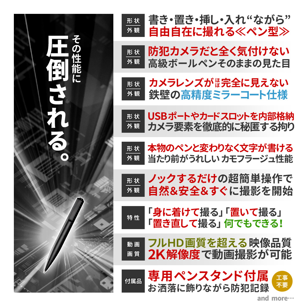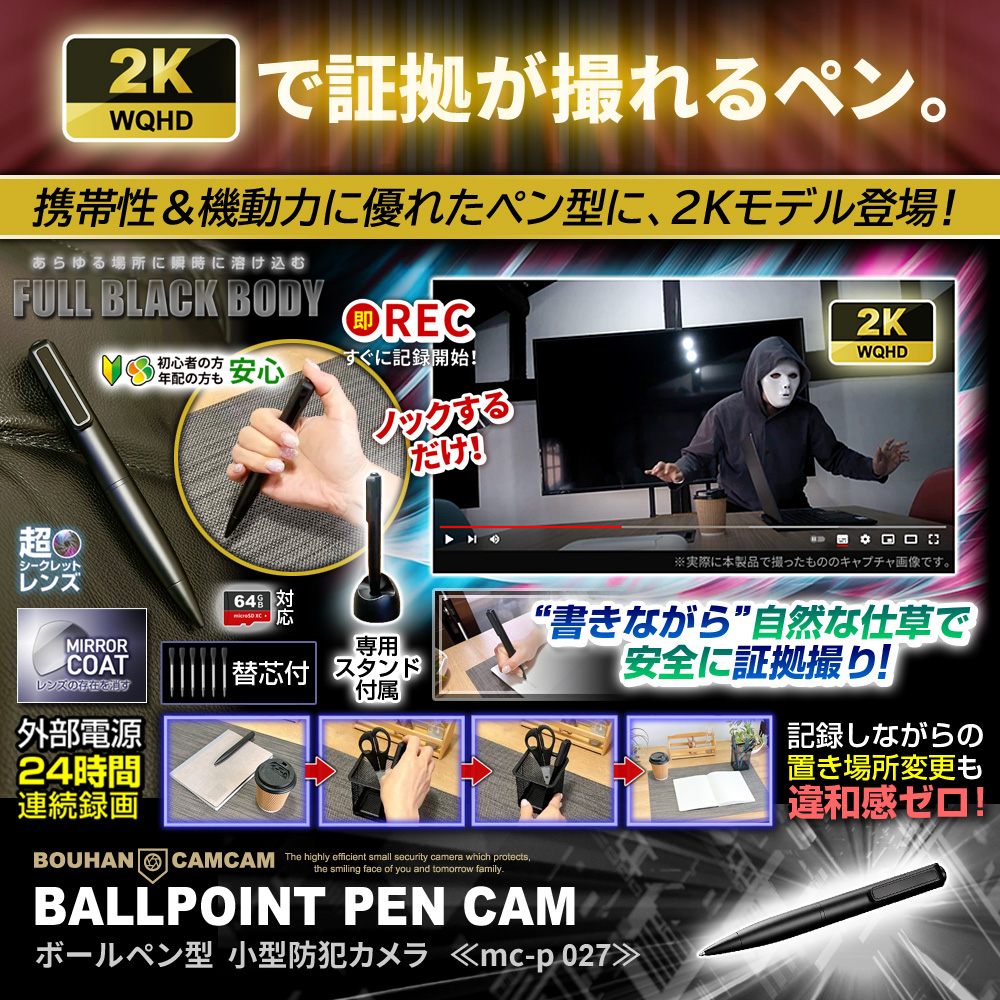 【半額SALE対象商品】[mc-p027] [ペン型] 2K 高画質 シークレットレンズ 簡単操作 ペンスタンド 替芯 付属