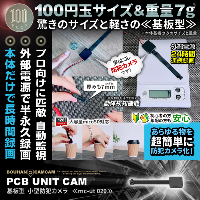 【半額SALE対象商品】[mc-ut029][基板型] 最軽量7g 保護ケース付き ボタン風レンズカバー 24時間連続録画