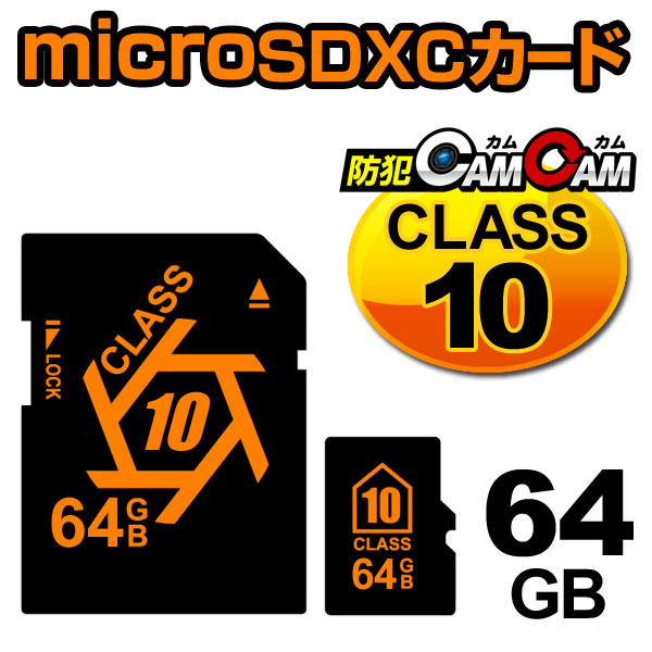 防犯カムカム専用 microSDカード microSDXCカード (マイクロSDXCカード) メモリーカード CLASS10 64GB 変換アダプター付属 pc-msd-64gb10 メール便送料無料